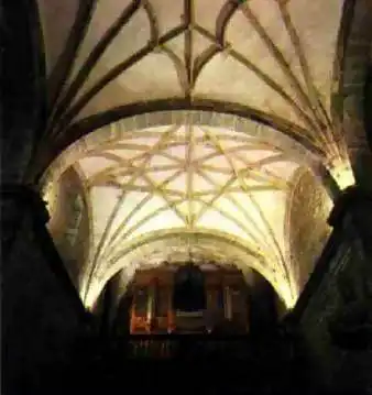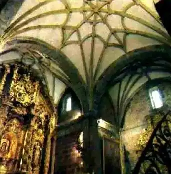 La nave está dividida en tres tramos cubiertos por bóvedas de crucería estrellada, con terceletes y combados, de tradición gótica. Tiene crucero y la cabecera es recta.