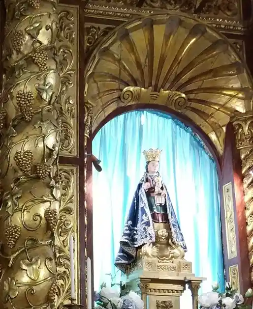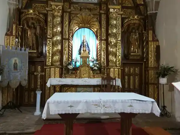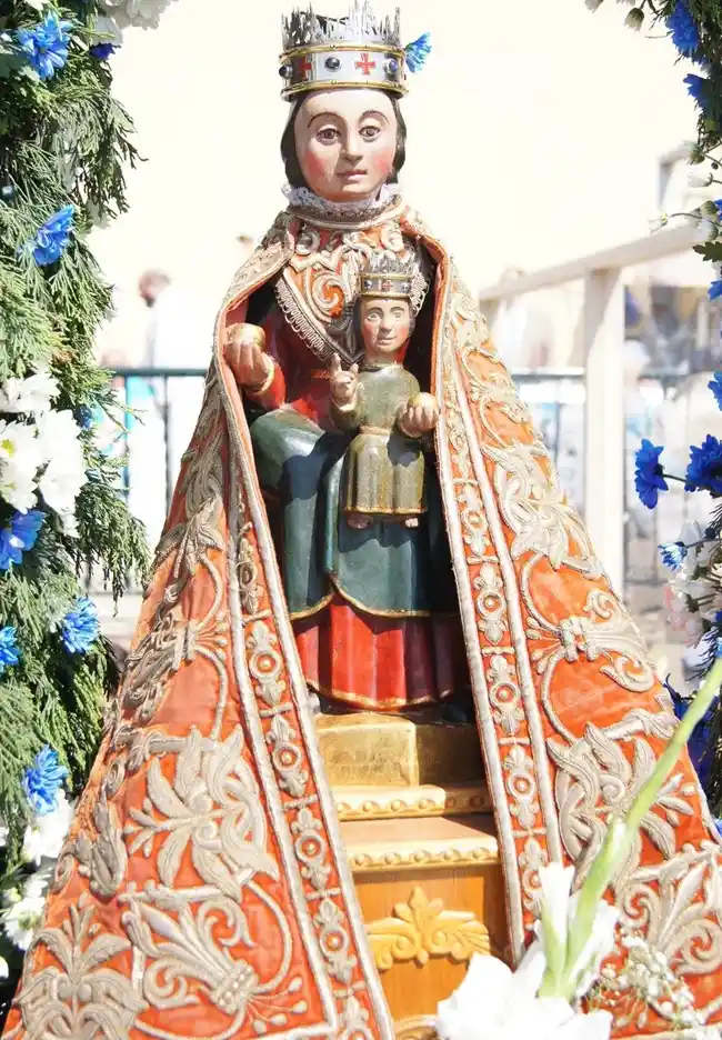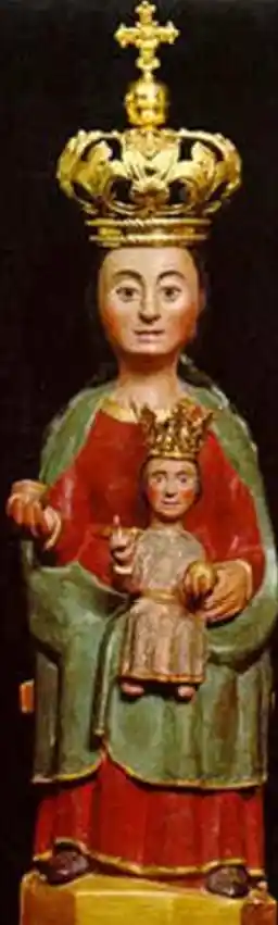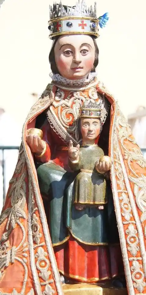El Niño está sentado en su rodillas, dando frente igual que la Madre. Data quizás del siglo XIV, de época inicial del gótico, pero con reminiscencias románicas. Talla simple e íntima; la leve sonrisa que presenta su faz propiamente aldeana, con una mirada que a pesar de su estatismo permanece penetrante y hermosa, le confiriere una encantadora inocencia.