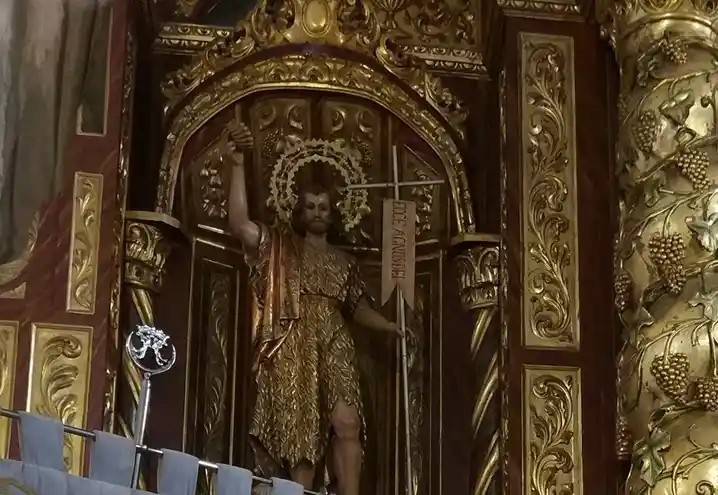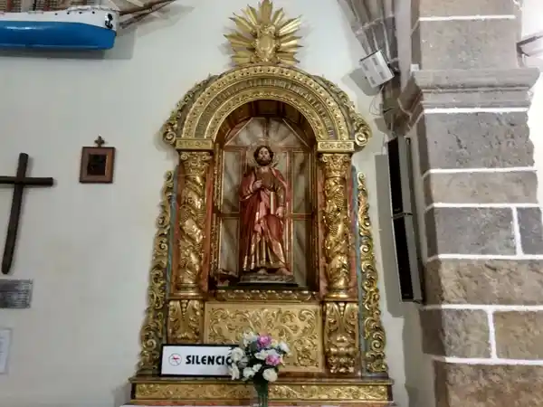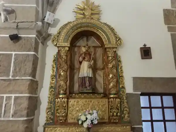 Se trata de una imagen sedente de 47 cm. tallada en madera de roble, (peana y bello pedestal barroco, obra de Manuel Cacicedo, añaden otros 38 cm).