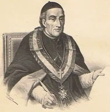 Nació en Luarca en 1743, fue nombrado Obispo de Santander en 1784 y falleció en 1819. En su pontificado se produjo la invasión francesa de 1808 y el inicio de la Guerra de la Independencia. Tanto él como las autoridades municipales de Santander, que luego se pondrían al frente, mantuvieron al principio mucha prudencia intentando controlar en todo momento la situación. Pero ocurrió un motín popular el 26 de mayo, y se formó a partir de entonces la Junta Suprema Cantábrica, presidida por este obispo, acérrimo enemigo de la Revolución Francesa y de sus ideales. Se formó el “Armamento Cántabro”, milicia de voluntarios contra el invasor. Al ser vencida dicha milicia, y ante el acoso a Santander, el obispo junto con los restos de la misma tuvo que huir de la ciudad hacia Asturias.