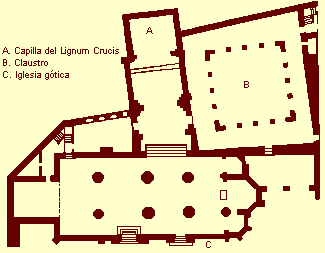 El templo sigue las directrices del gótico monástico de influencia cisterciense, con la claridad de líneas y de espacios y la sobriedad decorativa que caracteriza a la arquitectura de la Orden de San Bernardo. La iglesia es de planta rectangular y consta de tres naves con cuatro tramos y tres ábsides poligonales, siendo el central el más ancho. Todas las bóvedas de la iglesia son de crucería de cuatro, seis y ocho plementos y algunas con nervios de refuerzo, con arcos apuntados, sustentados en pilares de planta cruciforme con columnas adosadas.