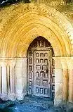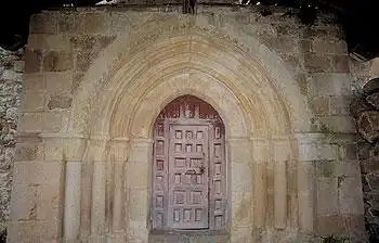 En la puerta principal el arco de entrada tiene tres columnas a cada lado, con capiteles, y tres arquivoltas; la exterior de punta de diamante y el resto de baquetón. No se sabe con certeza la fecha en que la iglesia fue construída, no obstante, en el arco de entrada se distinguen algunas letras, entre las cuales parece que se cita dicha fecha: Año MIIC Se consagró esta iglesia". Así pues, la iglesia pudo construirse en esa fecha, o sea en números actuales, el año 1098