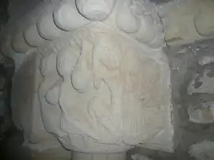 Es posible que con el tiempo se produjera un cambio en la advocación de la ermita, pues en la casa de Jado, que poseyó la ermita, se conserva una imagen en madera policromada del siglo XIX que presidió la ermita y que representa a otro San Román, soldado romano. Quizá en el tránsito de oficio monasterial a ermita se produjo una continuidad en el nombre pero la pérdida de la referencia concreta al santo. Pensamos que la figura que aparece cortada en una columna del del presbiterio, en el lado de la Epístola, puede representar a San Benito presentando la Regla benedictina, tal y como siglos después se le representa en grabados, esculturas y pinturas: en posición frontal, en ocasiones ligeramente barbado, mostrando y dictando el libro de la Regla a los monjes. En la columna del lado del Evangelio se representa a la Virgen con el Niño. Se establece así un paralelismo muy claro, pues mientras Benito muestra la Regla, la Virgen muestra al Niño. La imagen de la Virgen con el Niño es una versión tardía de imágenes de comienzos del siglo XII con el mismo tema, entre las que destaca la imagen de Nuestra Señora de la Majestad en la Catedral de Astorga, de madera chapada y policromada. El carácter hierático, muy vertical, de la imagen, el linealismo del vestido, la disposición de los pies, la forma del calzado, etc., sitúan a la imagen de Escalante en esta tradición. En el ejemplo de Escalante, la posición algo ladeada del Niño indica una cronología más tardía, hacia 1200.
