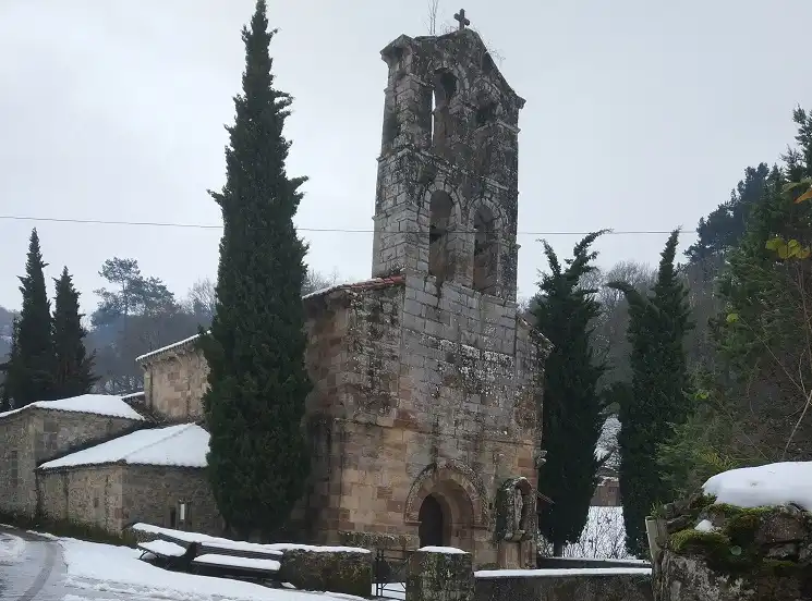 Como singularidad de este templo no se puede olvidar la alta espadaña , de dos pisos con vanos relacionada con la leyenda del paso de Doña Urraca por Anievas. Se dice que se elevó tanto para que esta pudiera oír sus campanadas desde Bostronizo cuando abandonó el pueblo de Cotillo indignada con los vecinos del mismo.