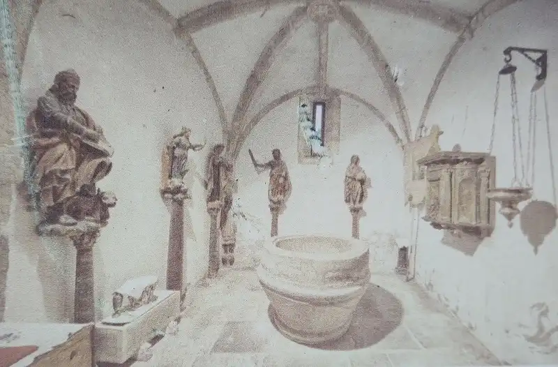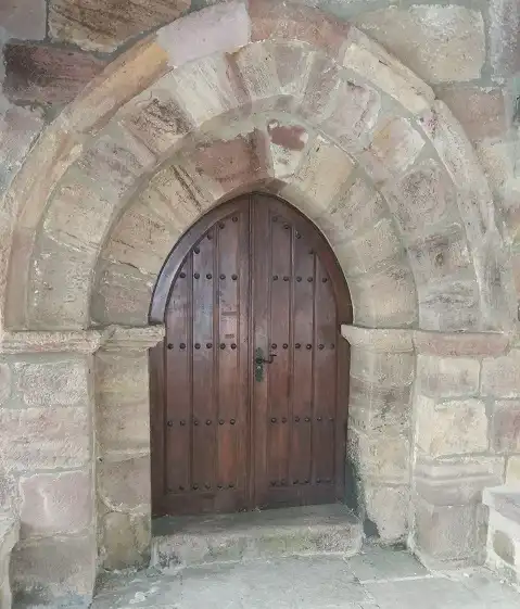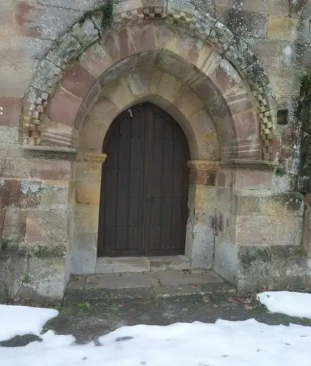 En algunos elementos incluidos en reformas posteriores aparece la fecha 1356 concretamente en una inscripción que aparece a la derecha de la portalada principal, que refleja el aspecto popular gótico, representando trazos arcaizantes del románico.