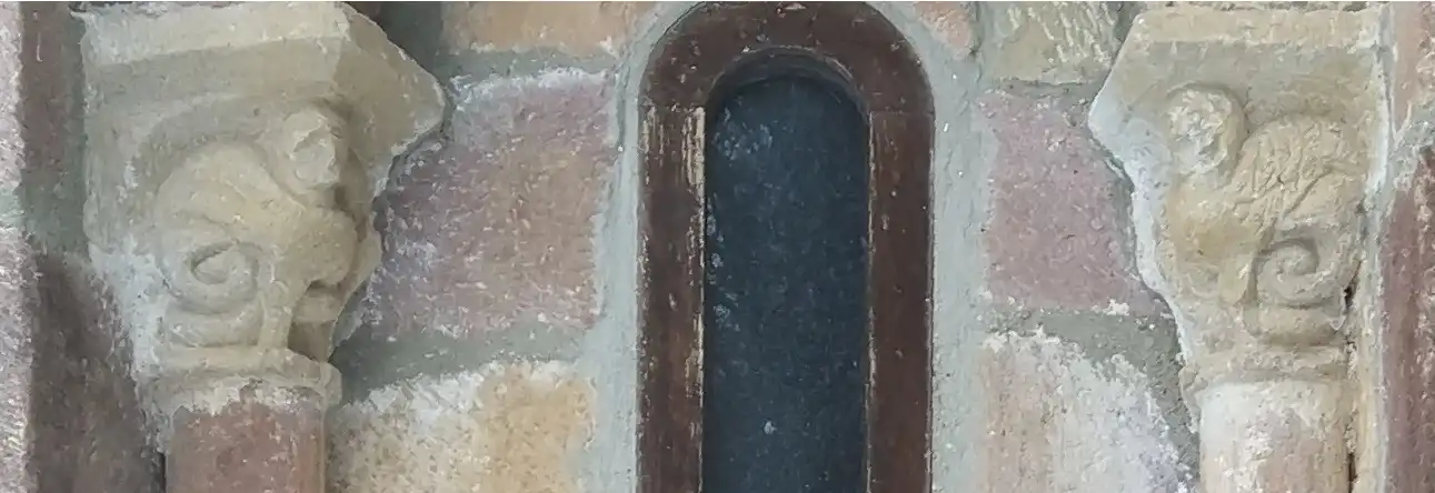 Hay otra puerta en el muro sur, apuntada, y con cimacio seguido con temas serpentiformes, centauros y personajes extraños simbolizando al mal. En esta misma fachada se encuentran dos ventanas con capiteles decorados con cabezas humanas, que suelen ser representaciones del alma.