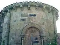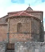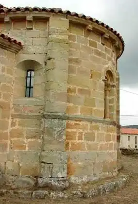 El ábside, de planta semicircular y de traza románica, se divide en tres áreas verticales por medio de contrafuertes prismáticos que llegan hasta la cornisa. Ésta descansa sobre canecillos lobulados sencillos.