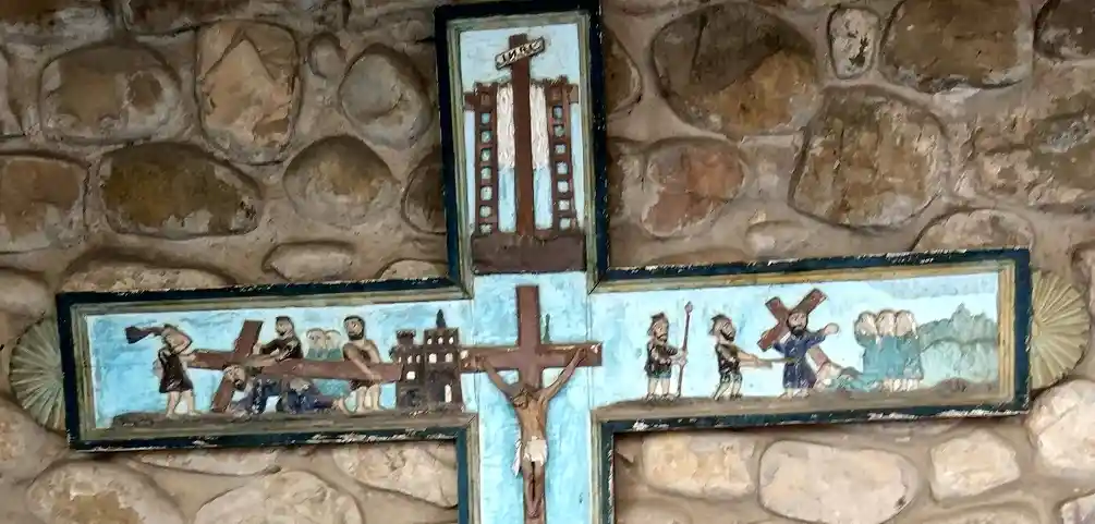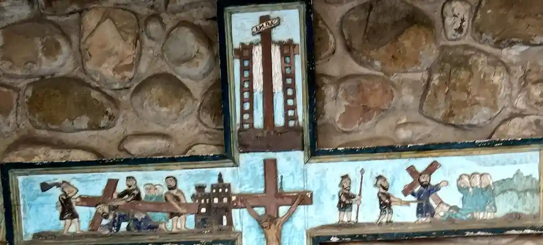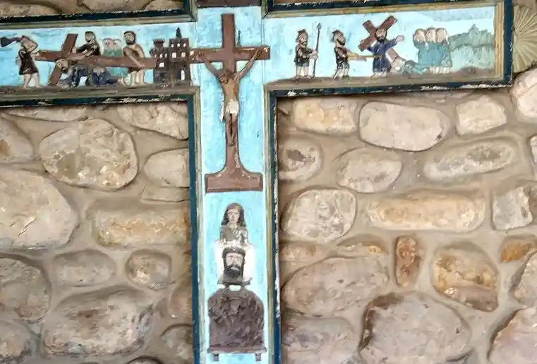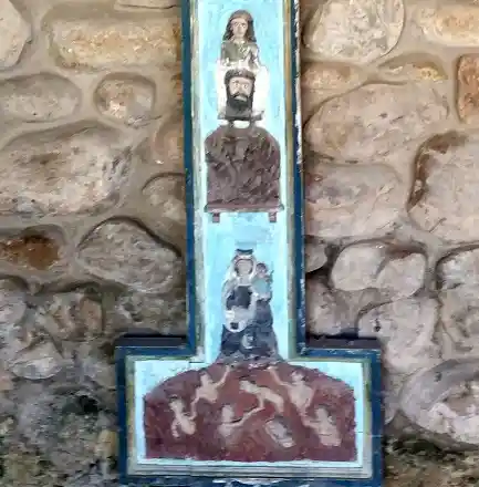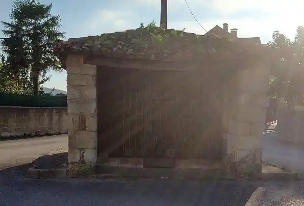 Humilladero con tejado a cuatro aguas en el centro del pueblo. Fotografías propias del autor de esta página tomadas el 30 de septiembre de 2021.