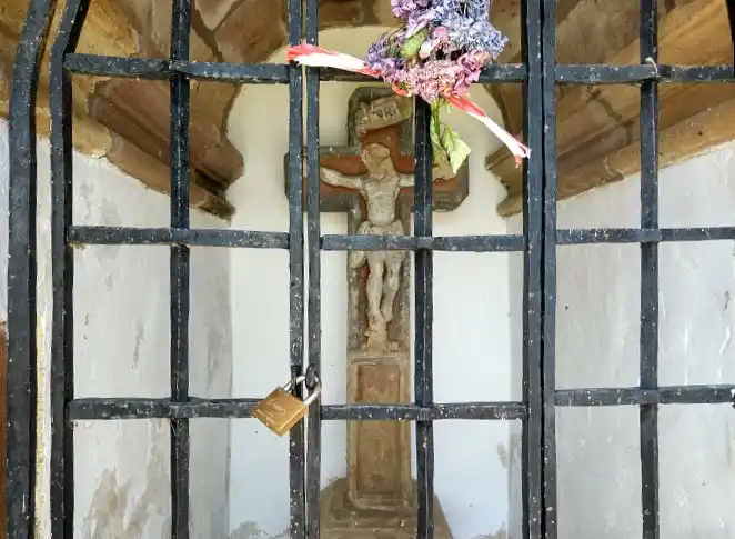 Humilladero a dos aguas en cruce de caminos. . Fotografías tomadas el 17 de julio 2021.