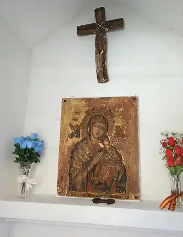 Pequeña casita a dos aguas próxima a la carretera nacional. En ella se contiene un cuadro de la Virgen (Nuestra Señora del Perpetuo Socorro). Sobre el cuadro una tosca cruz de madera con un rosario a ella colgado.