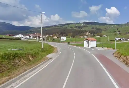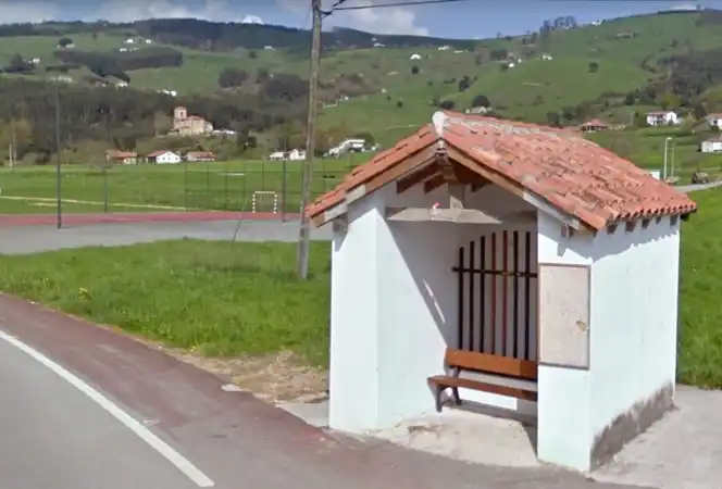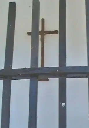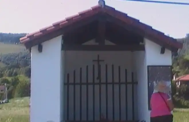 Humilladero a dos aguas cerrado el interior con una valla de madera. En el interior hay un pequeño crucifijo. Por fuera un banco permite sentarse.