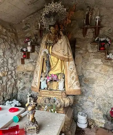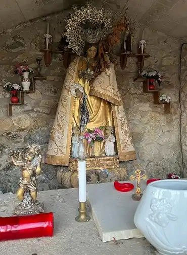 Humilladero a dos aguas. Contiene imagen de la Virgen de Los Remedios. En el lugar se celebra una romería muy concurrida. Salvo las tres primeras fotografías, de la fiesta, las demás fueron tomadas por el autor de la página el 2 de enero de 2022.