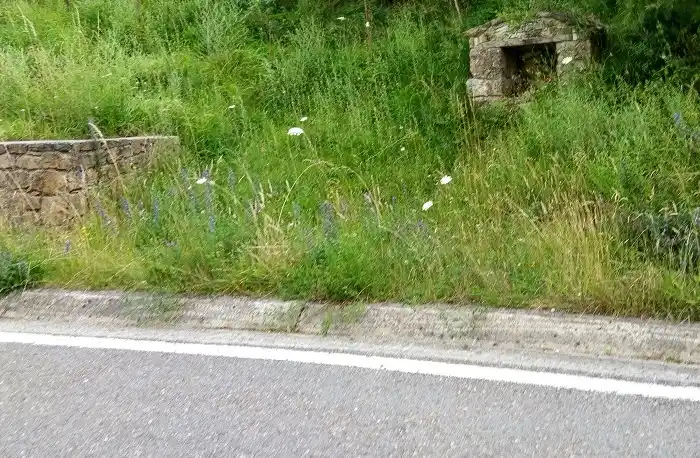 Humilladero rústico a lado de la carretera CA-856 entre Venta Fresnedo y Sobrelapeña. Fotografías de fecha 16 de julio de 2021.