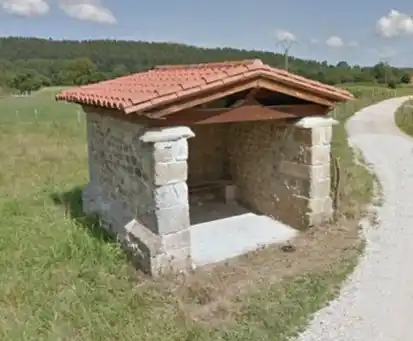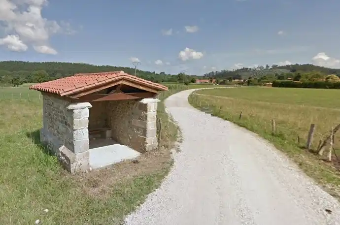 Humilladero con tejado a dos aguas próximo a cruce de caminos de fincas. Cuenta con un banco para sentarse. Actualmente esta vacío.