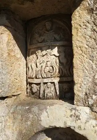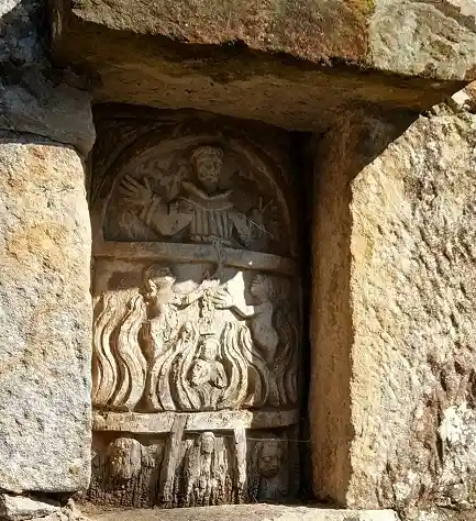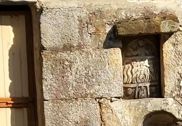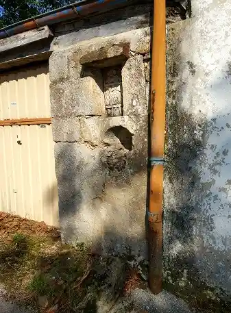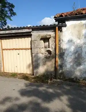 Pequeño humilladero incrustado en pared de cochera particular. Fotografías de 10 de julio de 2021.
