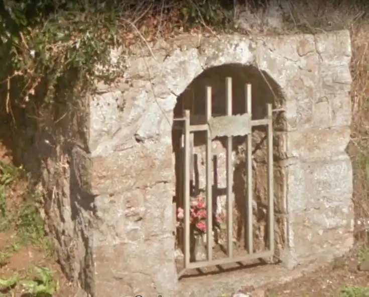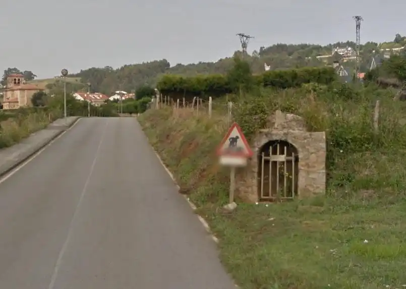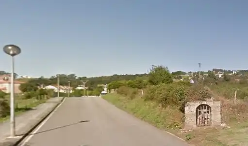 Humilladero de piedra con techumbre a dos aguas en zona rústica.Tiene una apertura al interior en arco de medio punto. Tiene en su interior una cruz de madera y está cerrada al exterior con una puerta de barrotes de madera.