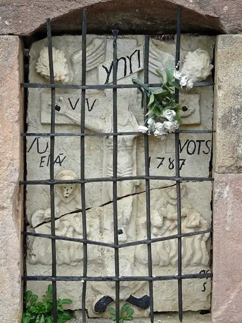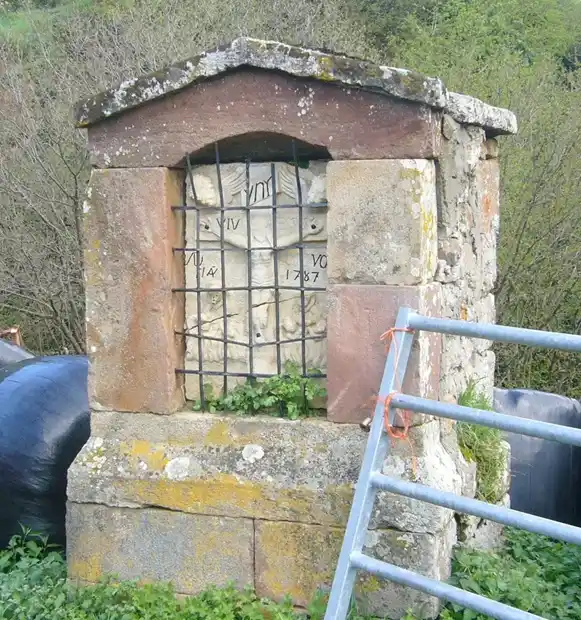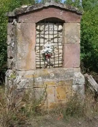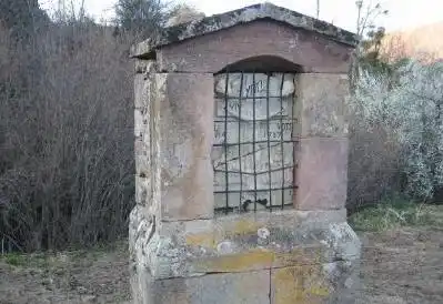 Humilladero de piedra con techumbre a dos aguas también de piedras.