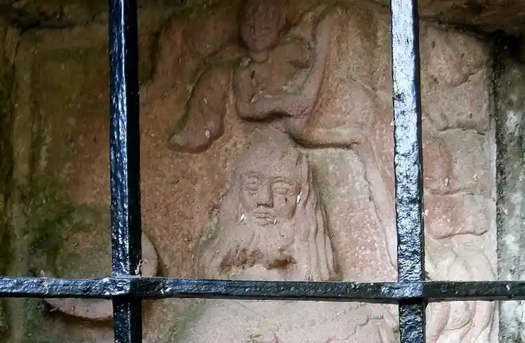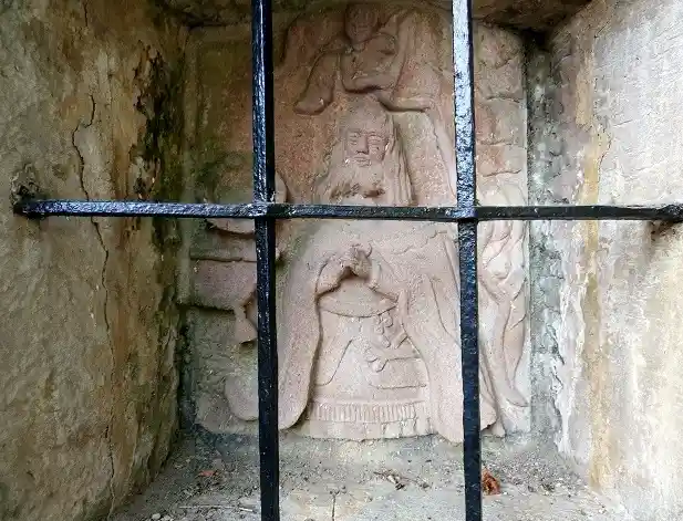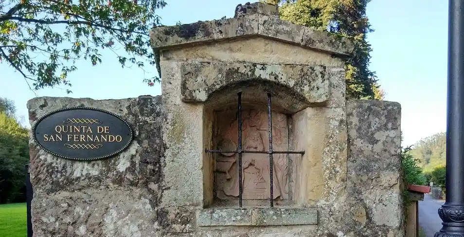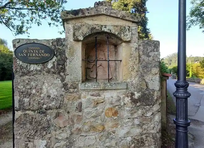Humilladero dedicado a san Fernando, a quien se representa en actitud orante grabado en la piedra de fondo de la hornacina que se encuentra en uno de los pilares de entrada a la finca llamada Quinta San Fernando. La hornacina aparece cerrada con barrotes cruzados de hierro. Fotos del autor de la página realizadas el 30 de septiembre de 2021.