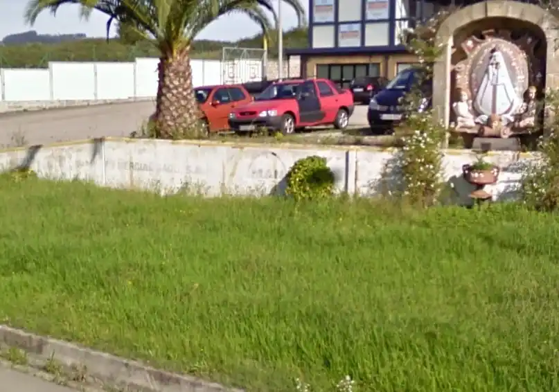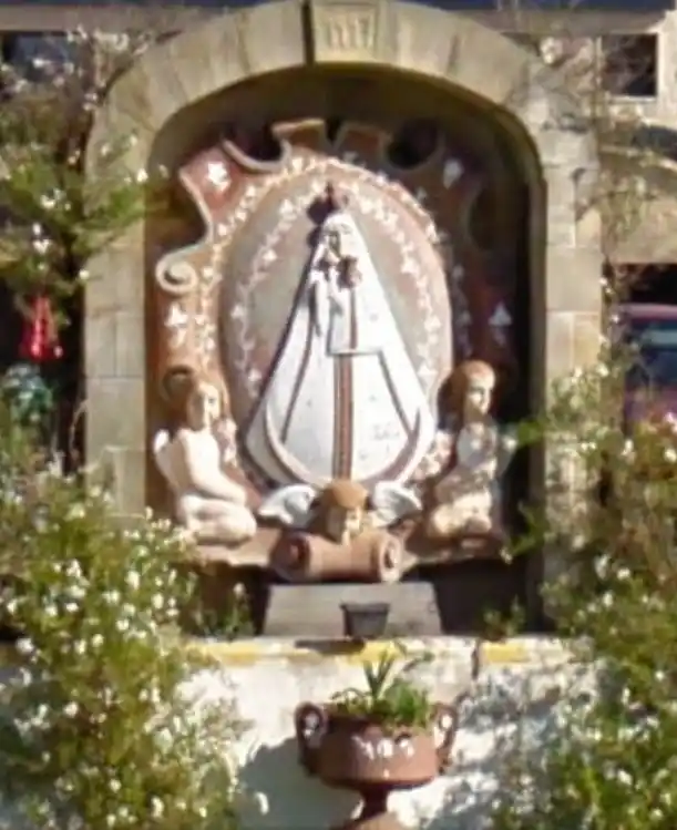 Humilladero con una imagen en su interior de la Virgen con tres ángeles.
