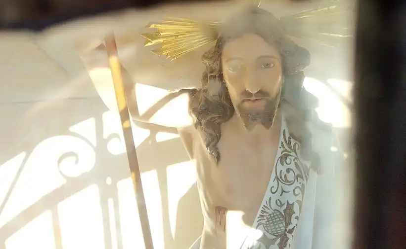 Humilladero con una imagen en su interior de Cristo Resucitado. Fotografías tomadas el 4 de octubre de 2021.