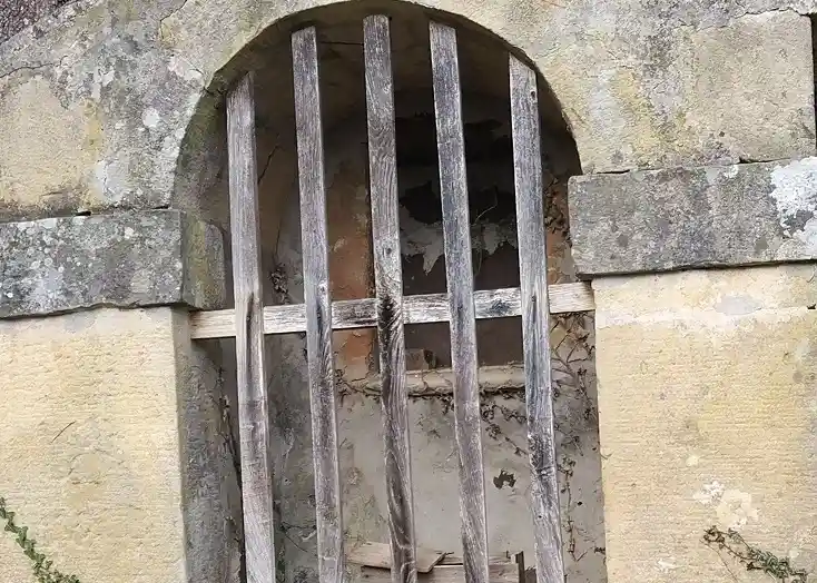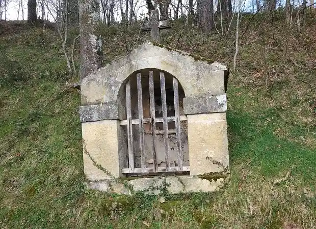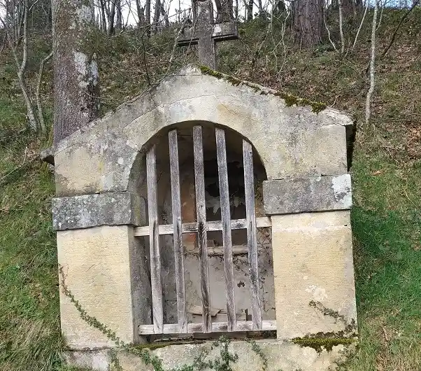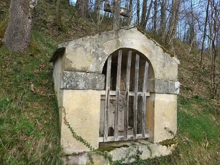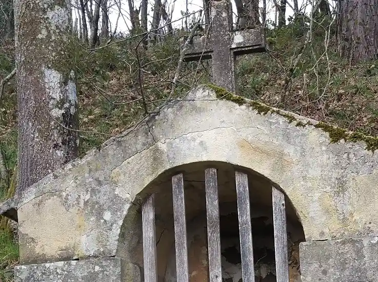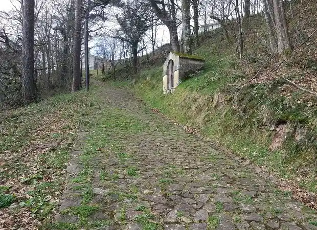 Humilladero con tejado de piedra a dos aguas. Se sitúa en el camino peatonal de subida desde la iglesia hasta el cementerio.