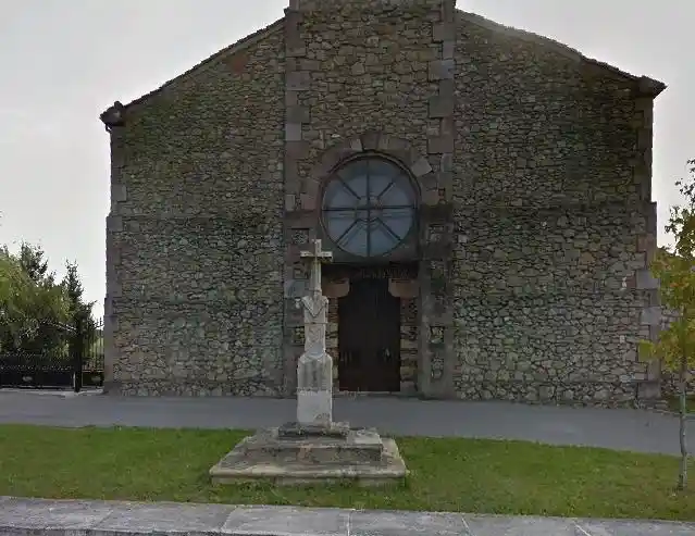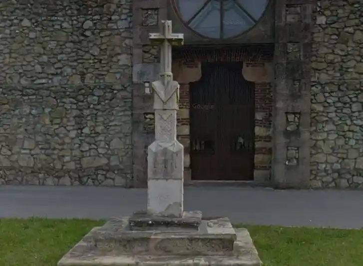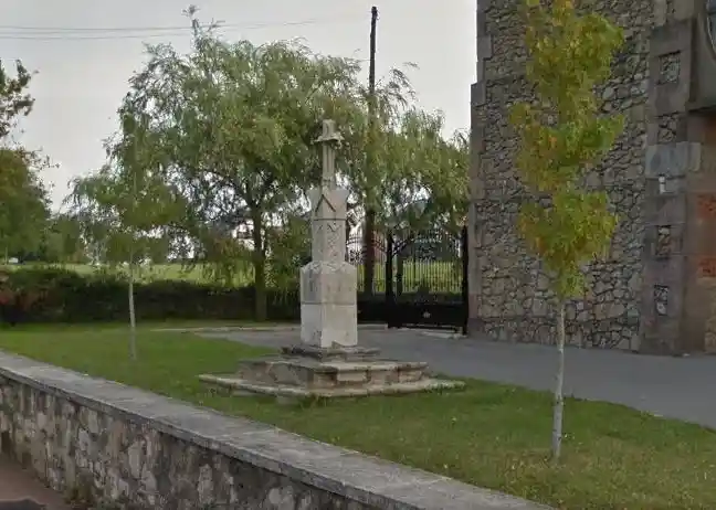 Cruz de piedra en el perímetro que vallado que rodea la iglesia parroquial.