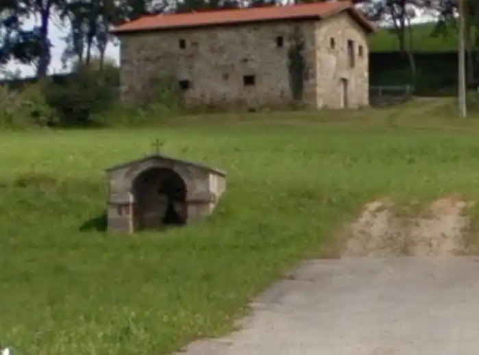 Humilladero de piedra con cubierta también de piedra y a dos aguas en campa próxima al cementerio.