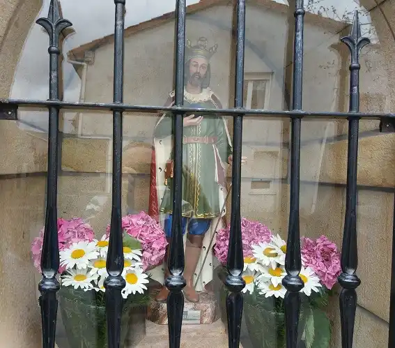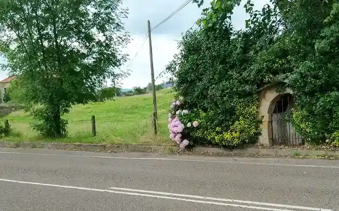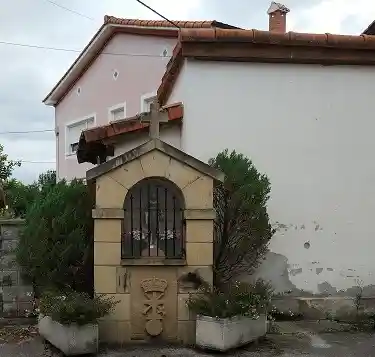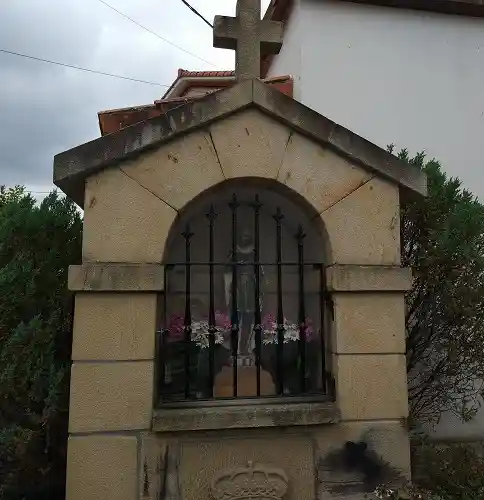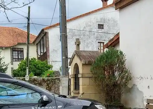 Pequeño humilladero en zona urbana. Techado pétreo a dos aguas.