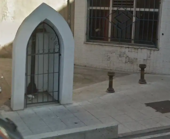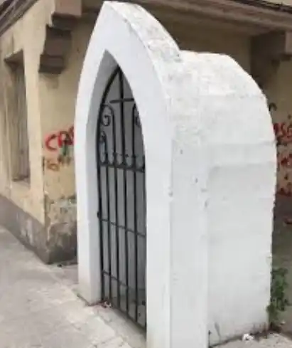 Humilladero en zona urbana. Con apertura en arco apuntado y cerrado con enrejado.