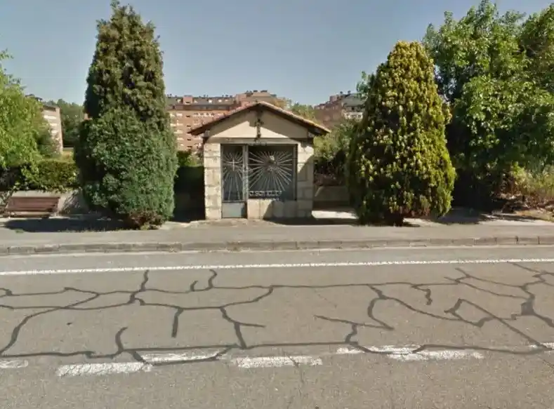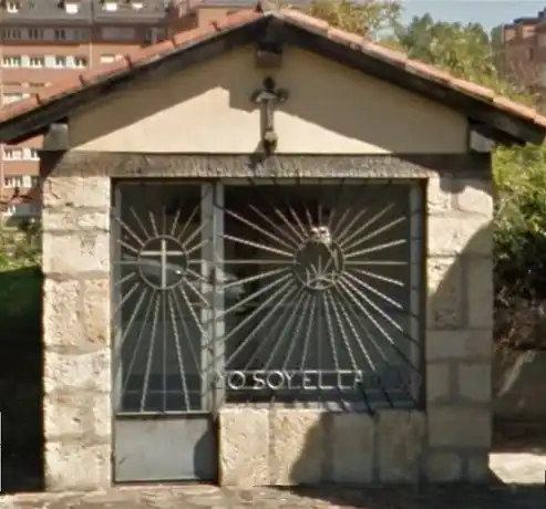 Humilladero con tejado a dos aguas, debidamente retejado y en buen estado de conservación. En su frente presenta una zona de ventana y una puerta, ambas enrejadas.