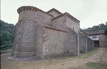 Las campañas de excavaciones arqueológicas realizadas a partir del año 2001 permiten una mayor aproximación al viejo monasterio, que fue fundado en el siglo IX y alrededor del cual giró mucha de la historia del valle. De este modo se ha constatado la existencia de un edificio primitivo, rectangular, sensiblemente perpendicular a la fachada meridional del templo actual, cuya datación cronológica se aproxima al inicio del monasterio, quizás en el siglo X. Los elementos arquitectónicos que han sacado a la luz las últimas investigaciones supone poner al descubierto, por primera vez, la estructura original y completa de un monasterio medieval. Constaba de dos alturas, con cubierta a dos aguas y espacios compartidos en su interior que corresponderían al vestíbulo, cilla (almacén o bodega), cocina y refectorio. En el piso superior estaría ubicado el dormitorio y el scriptorium. Por otra parte, en el interior del patio claustral se ha descubierto un campo completo de tumbas de lajas al nivel de estos muros.