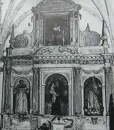 El retablo conserva la mayor parte de su policromía original plateresca, aunque muy alterada en sus tonalidades y motivos por sucesivos repintes.