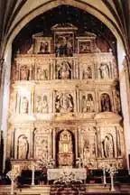 El retablo mayor es muy interesante. Fue ensamblado por Juan de Sopeña de Villaviad. Se compone de predella, tres cuerpos, coronamiento y cinco calles. Las imágenes de bulto se colocan en las calles una, tres y cinco, mientras que en la dos y en la cuatro encontramos bajorrelieves historiados con temas de la vida de la Virgen y la Natividad de Cristo. Es obra de Juan de Sopeña, porta esculturas de Juan de Palacio y fue policromado por Pedro de Bernales.