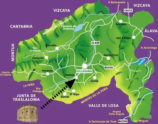 Pulsa en el mapa de la derecha con el ratón para localizar el templo en el Valle de Mena
