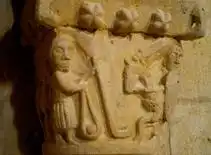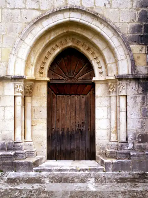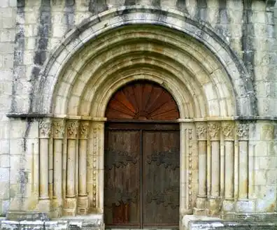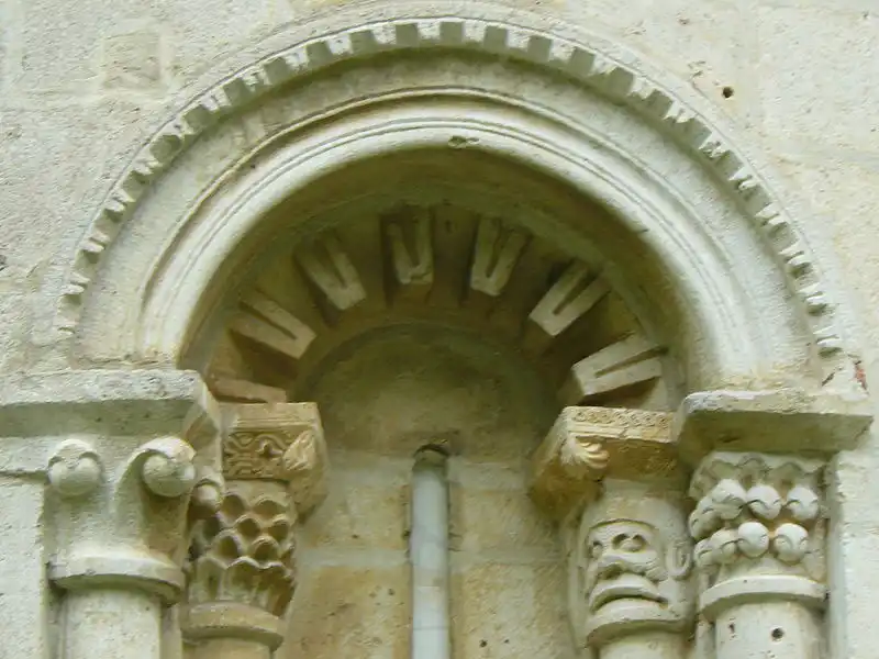 La meridional es sencilla, pero los capiteles de los dos pares de columnas que la flanquean tienen motivos semejantes. El arco es apuntado y también carece de tímpano.
