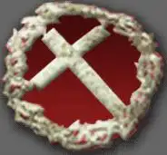 Corona de espinas que en su interior lleva la Santa Cruz inclinada 45 grados a la derecha, rematado el conjunto por corona real