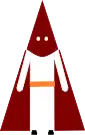 HÁBITO: Túnica y guantes blancos y cubrerrostro granate; a la cintura, una ancha faja de esparto.