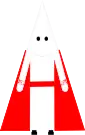 HÁBITO: túnica, cubrerrostro, calcetines y guantes blancos; capa y cíngulo encarnados y zapatos negros.