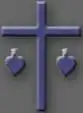 Rombo dentro del cual está la Santa Cruz y a cada lado de ésta un corazón, representativos de los de Jesús y María.