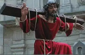 Es original la interpretación del tema que hace el escultor, con el Cristo en posición genuflexa portando sobre su espalda tan solo el "patibulum" o madero transversal de la cruz, al que están atadas sus manos; creación plástica que se basa en las modernas teorías sobre la Pasión del Señor. Cruz Solís (Sevilla 1.923) es notable escultor figurativo, catedrático de la Escuela Superior de Bellas Artes de Madrid y autor de obra sobre muy variada temática y materiales.
