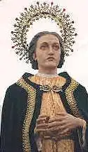 El popular "San Juanin" con su dedo índice apuntando al cielo procesionó durante siglos en Santander hasta que fue sustituido, en 1.915, por otro nuevo que encargó la Orden Tercera de San Francisco al escultor alavés Emilio Molina Payés. Destruida esta hermosa talla por el fuego en 1.920, se encomendó la actual, de vestir, a Coullaut Valera. Dicho artista, sevillano de nacimiento, fue una de las figuras claves de la estatuaria española en el primer cuarto del siglo XX. Aunque trabajó la talla religiosa con acierto ( a veces, con sublimidad incluso) destaca ante todo por su obra monumental: a Cervantes, Chisperos madrileños, Campoamor (todos en Madrid), Bécquer (Sevilla), Pereda (Santander), Navarro Villoslada (Pamplona), etc.