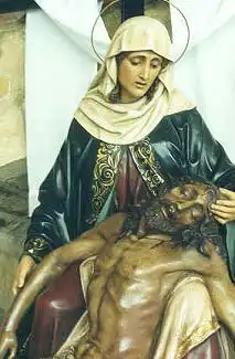 Esta obra es una reproducción de uno de los modelos más exitosos entre los surgidos de los talleres de Olot. No es extraña tal aceptación, pues resulta uno de los pocos modelos de este taller con dignidad artística apreciable. Su autor, Miguel Blay Fábregas (1.866-1936), escultor de grandes dotes y magnífica obra, es uno de los maestros indiscutibles del realismo español. Su primer aprendizaje fue en los talleres de Olot y, aunque creación juvenil, "La Piedad" ya revela sus sobresalientes cualidades. Entre la gran estatuaria de madurez pueden señalarse los monumentos madrileños al Dr. Cortezo, Mesonero Romanos y Federico Rubio o el grupo "Eclosión" (Biblioteca Nacional)